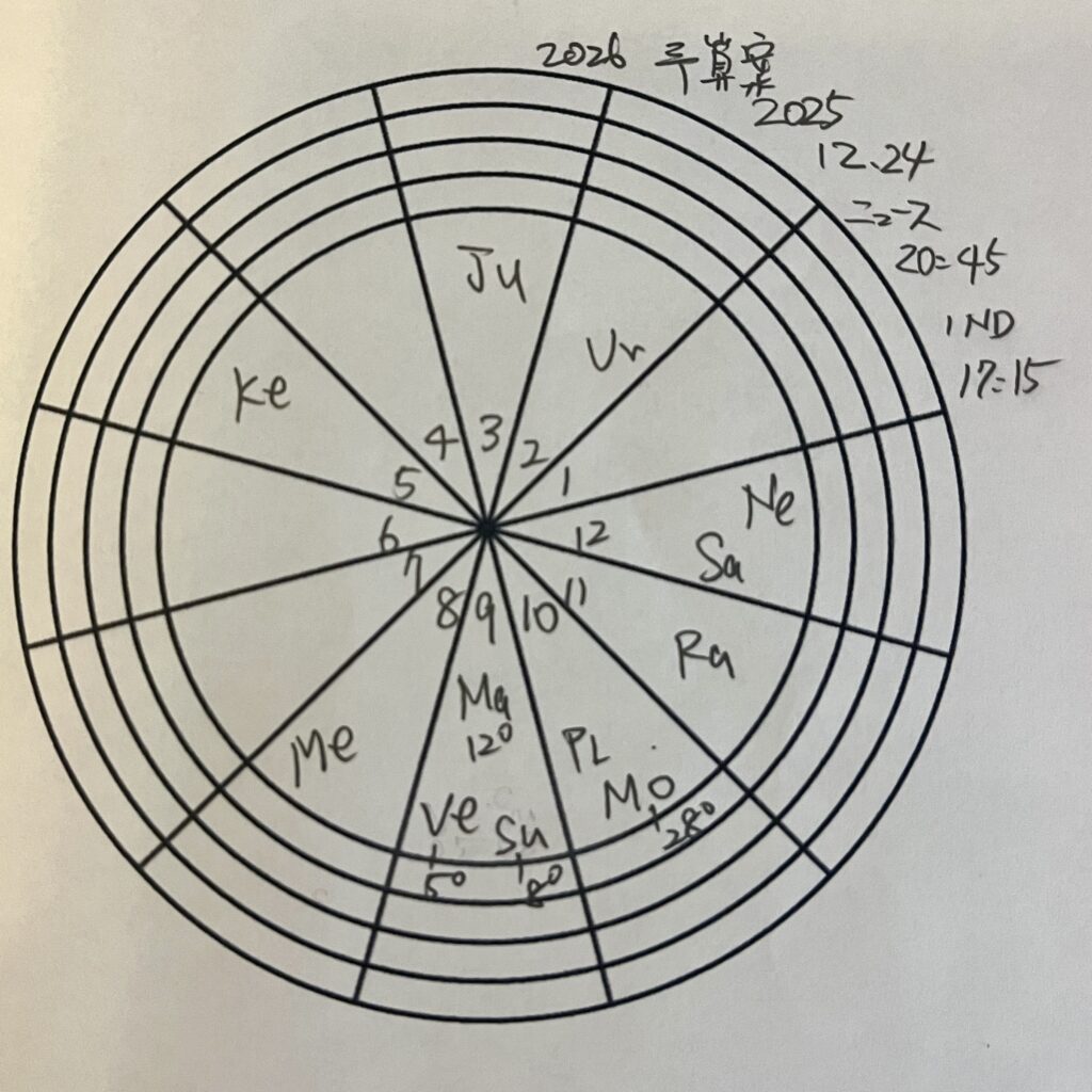 インド時間17:15で検証してみました。( )内はナクシャトラ